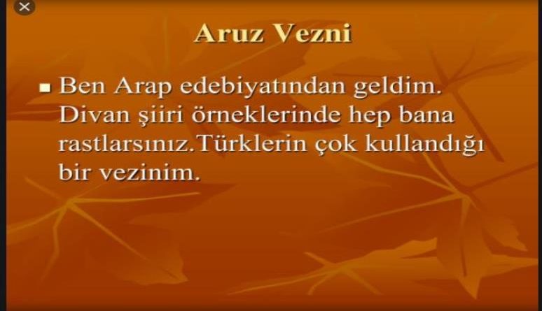 Aruz ölçüsüyle liseli yıllarda tanışmayanımız yoktur sanırım. Severiz ya da sevmeyiz, tartışılabilir. Fakat tartışılmayacak bir şey varsa o da bu ölçünün edebiyat tarihimizin bir dönemine çok güçlü olarak damgasını vurmuş olmasıdır. Bunu hiç kimse yadsıyamaz. Özellikle divan edebiyatında bu ölçüyle doruk noktalarda değerli eserler üretilmiştir. Zamanla değişen akımlar ve alışkanlıklar, uygulanmasındaki zorlukların da etkisiyle bu ölçünün kullanım alanından kalkmasına daha doğrusu kullanılırlığının sıfır diyebileceğimiz bir noktaya inmesine neden olmuştur. Cumhuriyet döneminde ise gittikçe geri plana itildiği için çok az şair bu alandaki uygulamaları başarıyla sürdürmüştür. Günümüzde ise hiç yoktur diyebiliriz.
